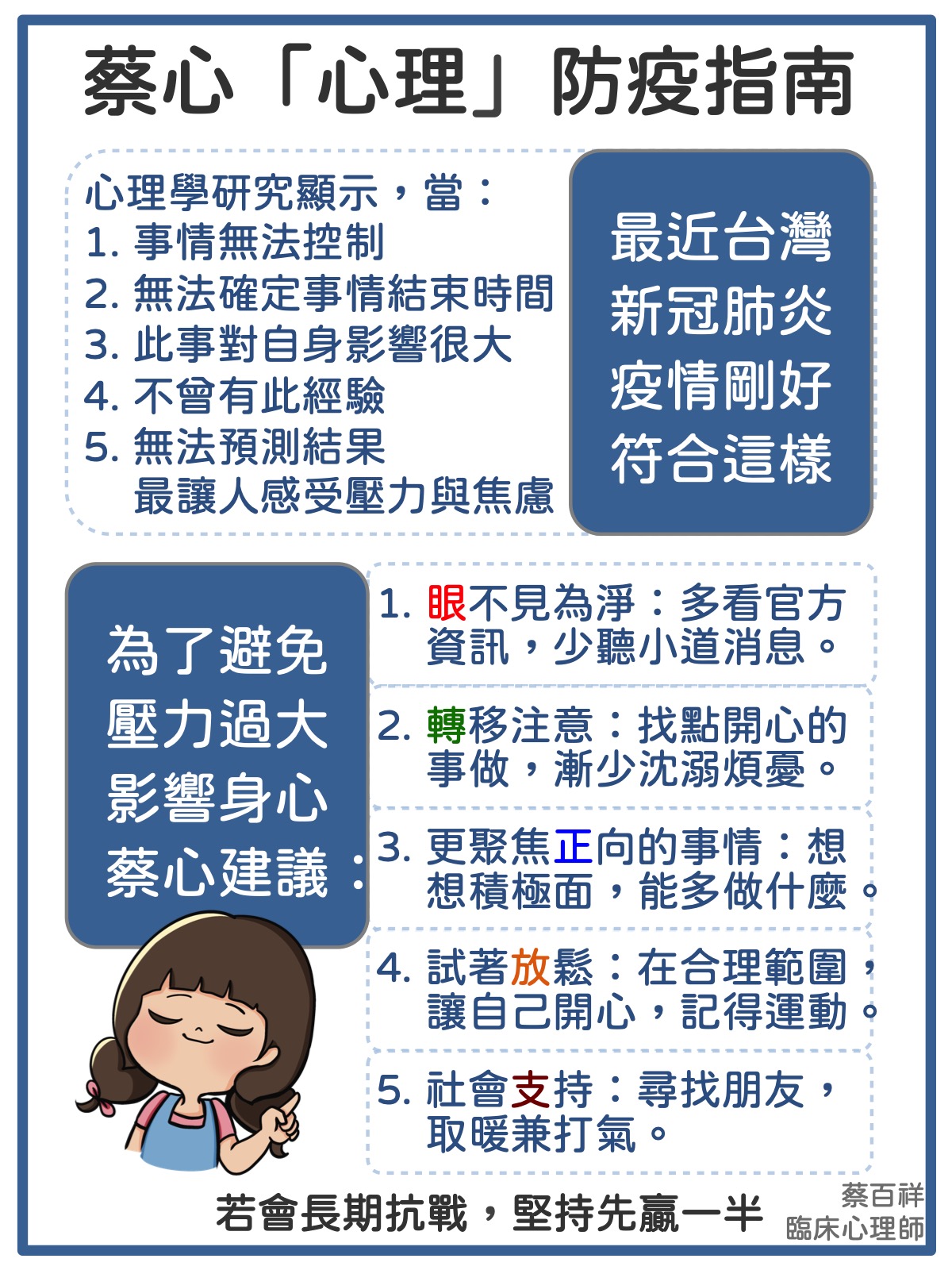 我整理了五點心理防疫指南,希望大家可以參考一下唷!